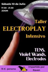 El próximo 10 de julio el Señor Raven impartirá un taller intensivo de Electro Play por zoom. Copio la información de fetlife: