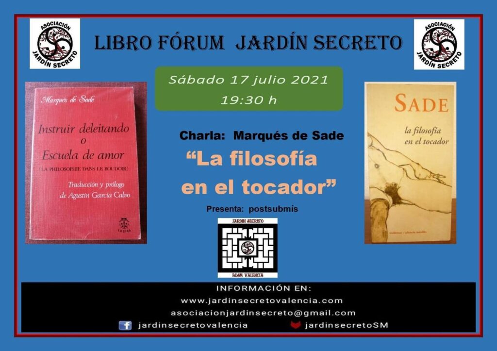 Libro forum «Filosofía en el Tocador» en Jardín Secreto – Valencia, 17 jul.’21